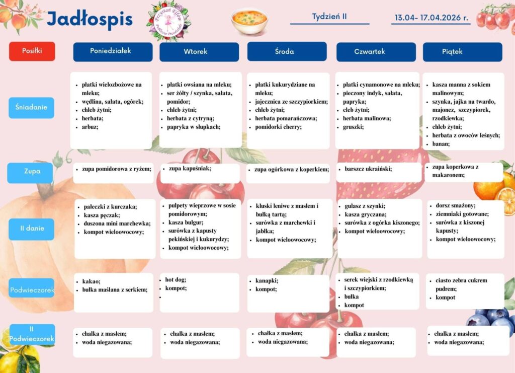 Strona główna Jadłospis Jadłospis 13.04 – 17.04.2026 r.